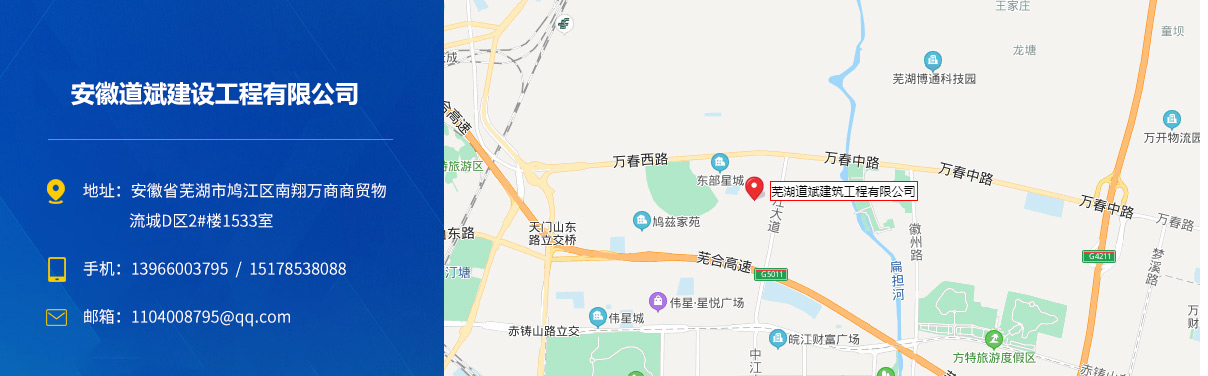 - 安徽道斌建設工程有限公司成立于2018年4月,主要從事工程施工、工程勞務、鋼結構施工、市政公用施工,市政施工總承包貳級、地基基礎工程專業承包貳級、防水防腐保溫工程專業承包壹級、鋼結構工程專業承包貳級、建筑裝修裝飾工程專業承包貳級、建筑工程施...